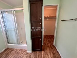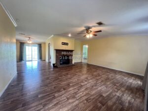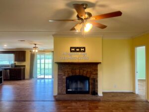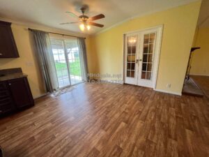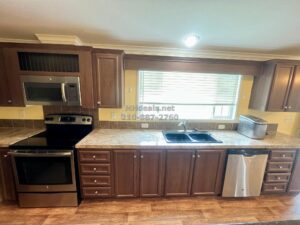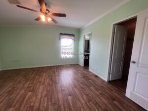 This amazing used 2014 Palm Harbor double-wide home boasts full tape and texture walls throughout, lending it a modern and well-maintained appearance. The living room is generously sized and features a wood-burning fireplace, while the kitchen is massive, offering over 30 cabinets, ample counter space, and a large 8-foot granite island with a vegetable sink.